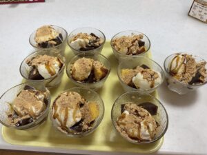 この日の昼食は屋台メニューで提供されました。おやつには5階職員で考えたおやつを手作りして食べて頂きました。