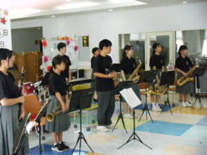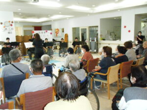 午後から三木東中学校吹奏楽部の皆様に来てもらい演奏して頂きました。演奏を聴いた利用者様は手を叩たり足でリズムをとったり大満足されているご様子でした。