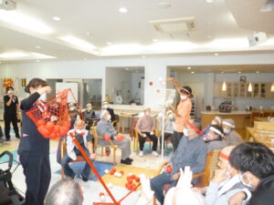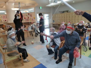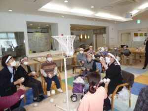 デイサービス運動会!!! デイサービス 今日(10月24日(金))はデイサービスの運動会でした。 皆でラジオ体操をしたり、赤チームと白チームに分かれて玉入れをしました。 白熱した戦いでしたが、結果は引き分けとなりました。 その後、パン(あんぱん)食い競争をして、おやつに皆さんで召し上がられました。楽しい時間となりました。皆様、お疲れさまでした。 2025年10月27日