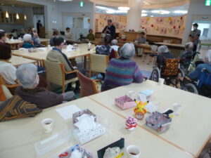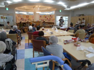 ブログ TOPブログデイサービス ボランティア「らくおんの会」 デイサービス ボランティア「らくおんの会」 デイサービス 本日(11月12日(水))は、「らくおんの会」の皆様が来てお琴や尺八の演奏をして下さいました。 演奏に合わせて歌ったり手拍子をされたり、初めて生で聞く音色にうっとり聞き入っていました。 「らくおんの会」の皆様ありがとうございました。とても貴重な時間を過ごすことが出来ました。 2025年11月17日