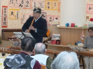 デイサービス ボランティア「らくおんの会」 デイサービス 本日(11月12日(水))は、「らくおんの会」の皆様が来てお琴や尺八の演奏をして下さいました。 演奏に合わせて歌ったり手拍子をされたり、初めて生で聞く音色にうっとり聞き入っていました。 「らくおんの会」の皆様ありがとうございました。とても貴重な時間を過ごすことが出来ました。 2025年11月17日