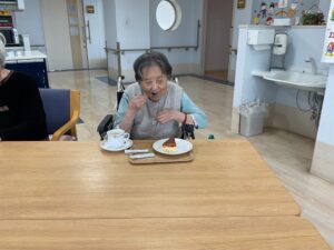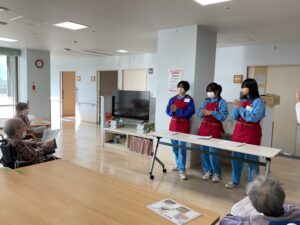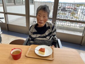 トライやるウィークの学生が歌を歌って下さいました。若い学生たちが歌うと入居者の方たちも大きな声で笑顔で一緒に歌えました。若いってそれだけで武器ですからねー。その後は、ケーキバイキングで自分の好きなケーキを選んでお腹いっぱいになりました。今日は、良い事ばかりでした。