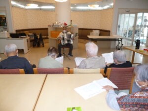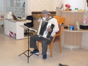 FMみっきいパーソナリティ 林文吉さん デイサービス 令和8年3月26日(木) 今日は待ちに待った林文吉さんが来てくれました。 アコーディオンを弾きながら素敵な歌声を聞かせて下さいました。 みなさんも演奏に合わせて歌い、楽しまれていました。 また次回も楽しみにしております。ありがとうございました!! 2026年03月30日