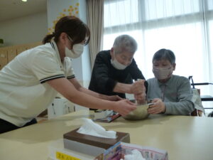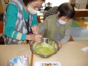 ブログ TOPブログ4月おやつレク(春色蒸しパン) 4月おやつレク(春色蒸しパン) デイサービス 4月13日(月) おやつレクで「春色蒸しパン」を作りました。 ホットケーキミックスと溶かしたアイスクリームを紙コップの中に入れ、12分蒸すと出来上がり!! 一緒に混ぜてもらいました(^^♪ いちご、バニラ、抹茶、の3種類作りました。 蒸したては凄く美味しかったと言って頂けました。 次回は4月16日(木)お楽しみに!! 2026年04月17日